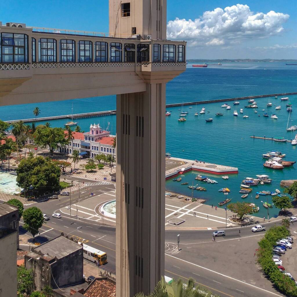 L'ascenseur Lacerda - cet ascenseur public monumental construit en 1873 qui relie la ville haute à la ville basse - est lui-même une attraction. La descente donne une vue saisissante sur le port de Salvador et la Baía de Todos os Santos, la plus grande baie du Brésil.